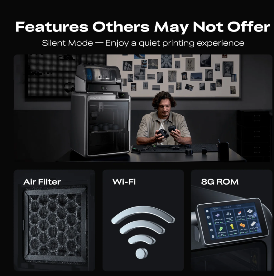 • Интерфейсы: Wi-Fi (2,4 ГГц), USB-накопитель, порт Creality 485.